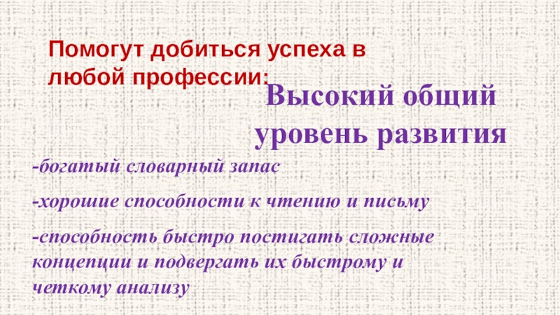 -хорошие способности к чтению и письму