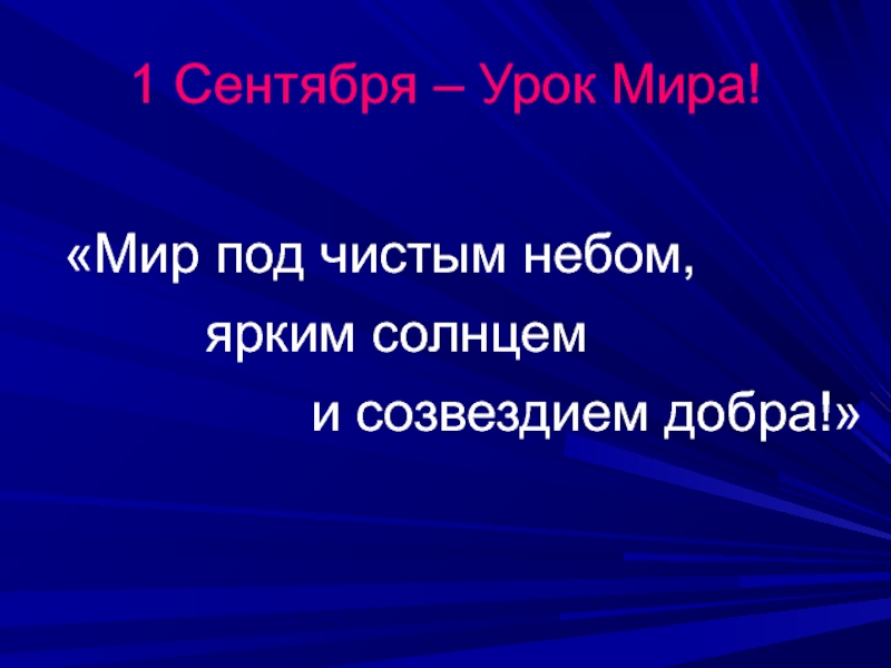1 Сентября – Урок Мира!     «Мир под чистым небом,