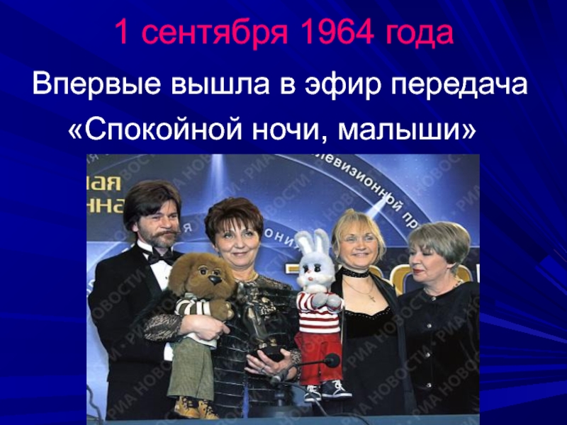 1 сентября 1964 года  Впервые вышла в эфир передача    «Спокойной ночи, малыши»