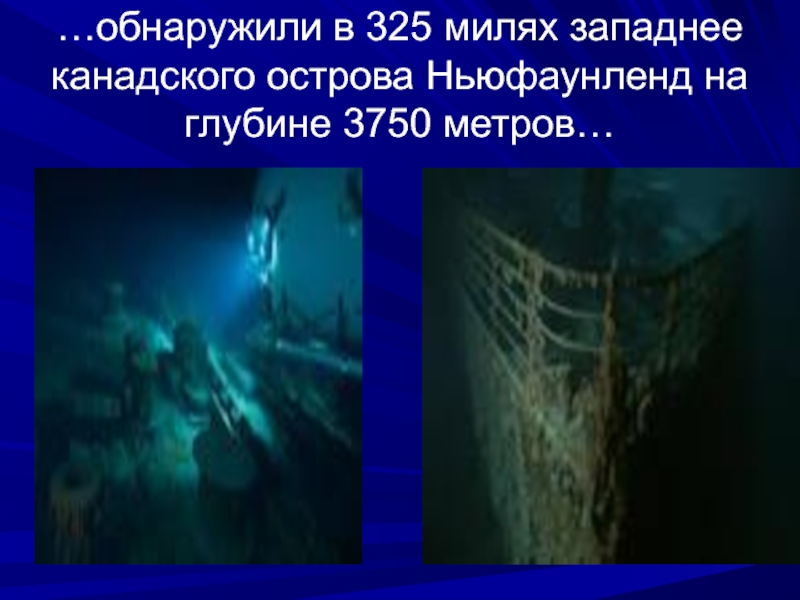 Слайд 22…обнаружили в 325 милях западнее канадского острова Ньюфаунленд на глубине 3750