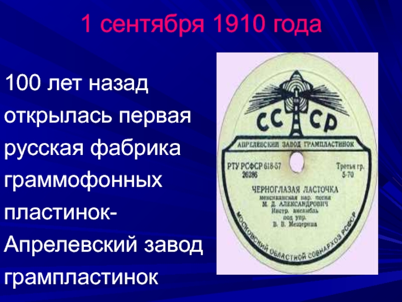1 сентября 1910 года100 лет назад открылась первая русская фабрика граммофонных пластинок-Апрелевский завод грампластинок