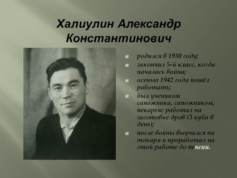 после войны выучился на токаря и проработал на этой работе до пенсии.