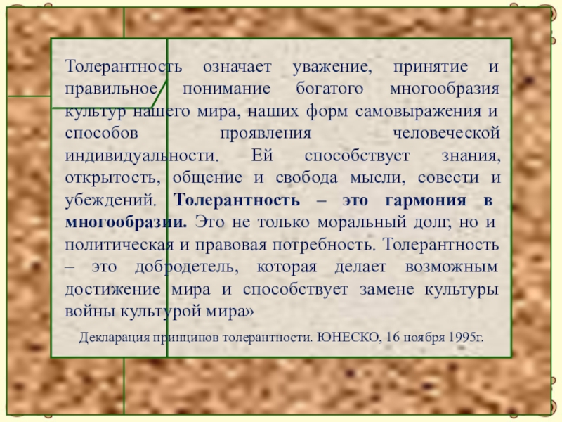 Французский язык. Толерантность – уважение свободы другого, его образа мысли, поведения, политических и религиозных взглядов.