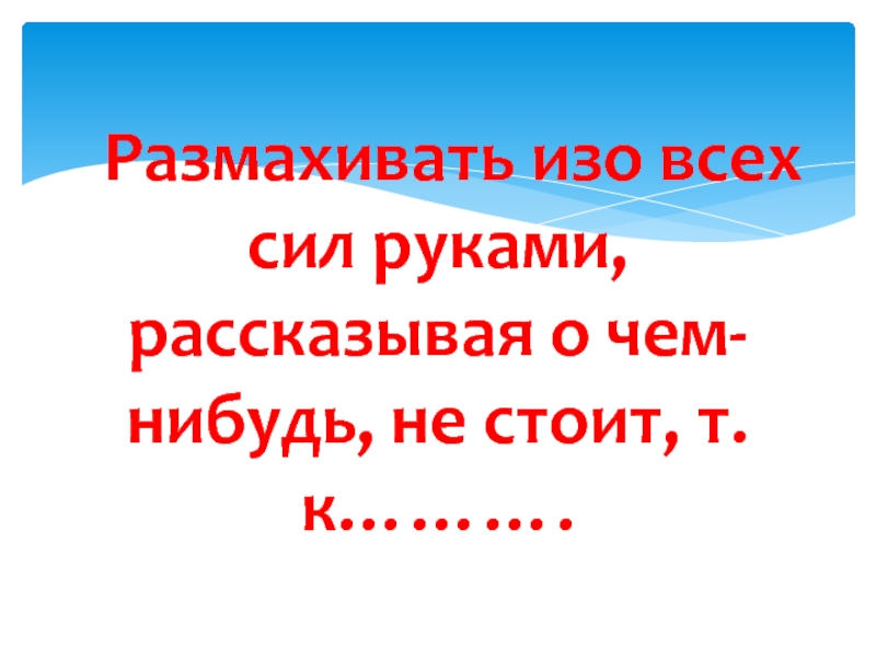 Слайд 20 Размахивать изо всех сил руками, рассказывая о чем-нибудь, не стоит, т.к……….