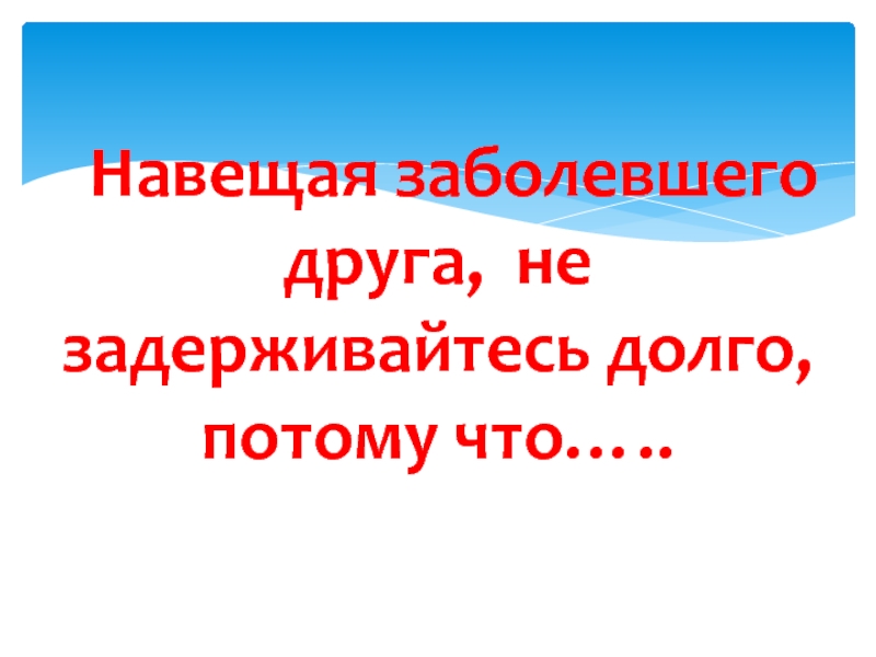 Слайд 19 Навещая заболевшего друга, не задерживайтесь долго, потому что…..