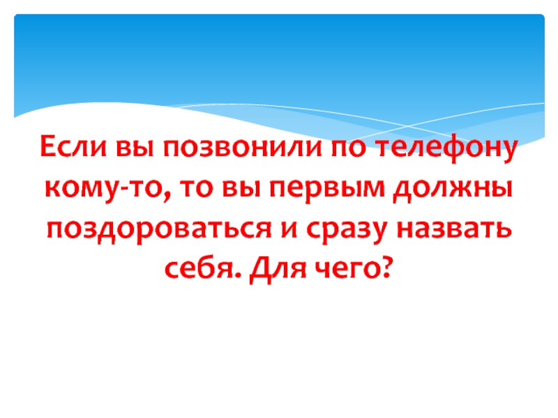 Слайд 17Если вы позвонили по телефону кому-то, то вы первым должны поздороваться
