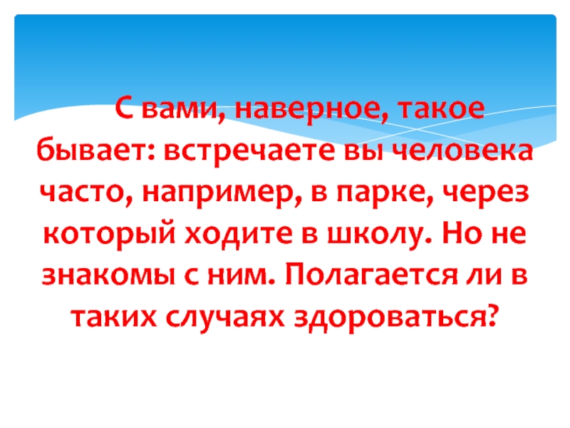 парке, через который ходите в школу. Но не знакомы с ним. Полагается ли в таких случаях здороваться?