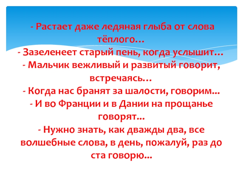 Слайд 7 - Растает даже ледяная глыба от слова тёплого…