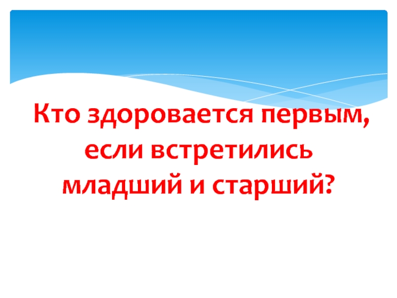 Слайд 9 Кто здоровается первым, если встретились младший и старший?