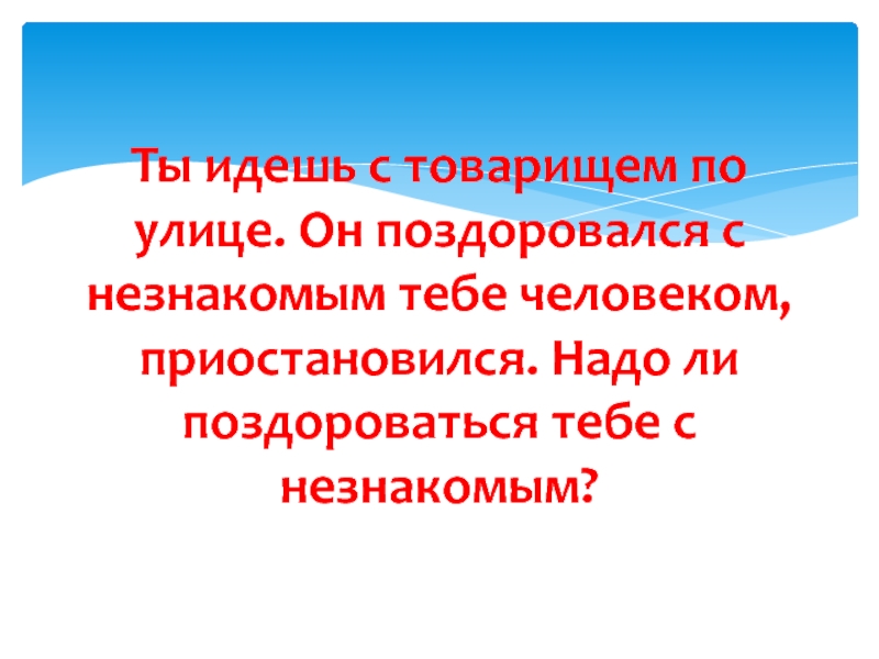 Слайд 10Ты идешь с товарищем по улице. Он поздоровался с незнакомым тебе