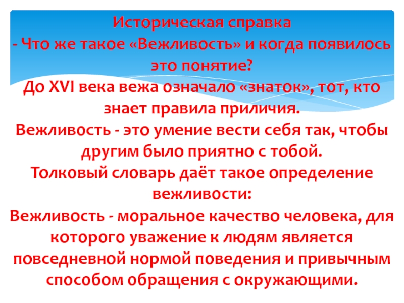 - Что же такое «Вежливость» и когда появилось это понятие?