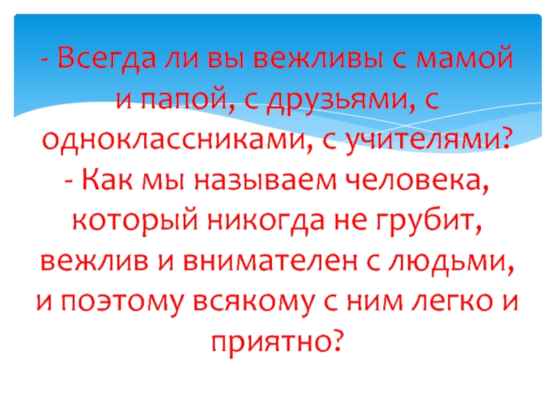 Слайд 3- Всегда ли вы вежливы с мамой и папой, с друзьями,