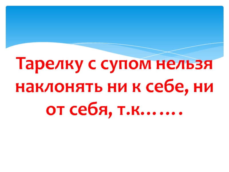 Слайд 18Тарелку с супом нельзя наклонять ни к себе, ни от себя,