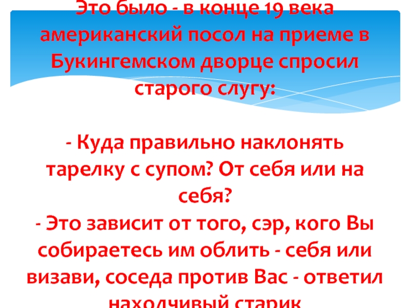 Слайд 22Это было - в конце 19 века американский посол на приеме