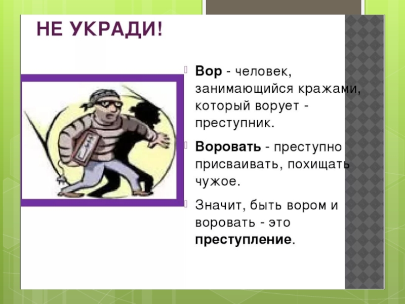 Презентация, доклад к классному часу: Воровство- это преступление.
