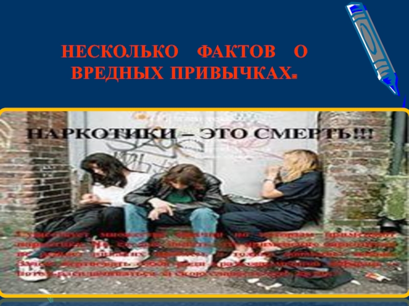 Слайд 12 НЕСКОЛЬКО ФАКТОВ О ВРЕДНЫХ ПРИВЫЧКАХ.