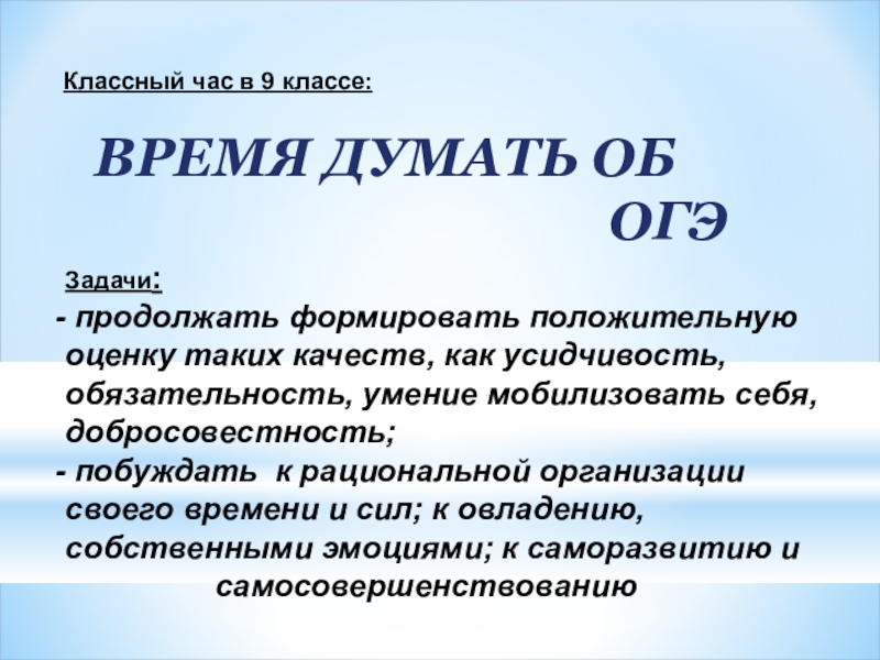 Классный час в 9 классе: