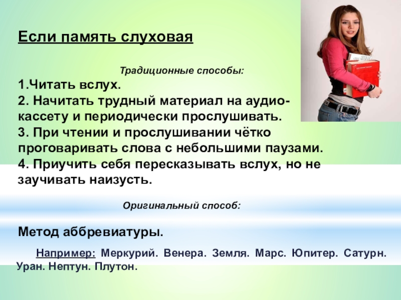 Например: Меркурий. Венера. Земля. Марс. Юпитер. Сатурн. Уран. Нептун. Плутон.