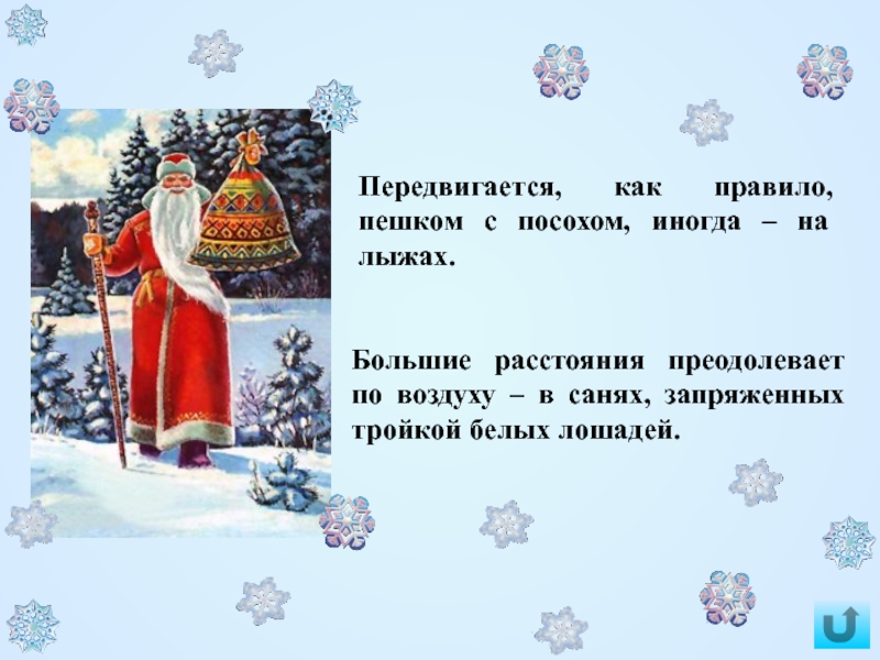 Раньше нрав у Деда был довольно суров и крут. Он не только одаривал тех, кто ему угодил, но и карал строптивцев – ударом посоха замораживал до смерти.