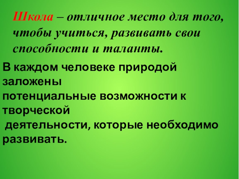 Школа – отличное место для того, чтобы учиться, развивать свои способности и таланты.