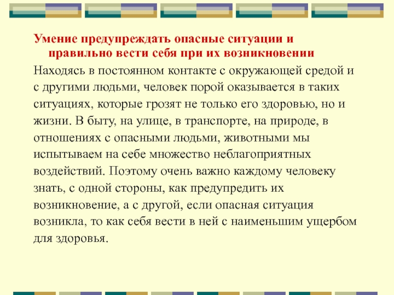 Слайд 24Умение предупреждать опасные ситуации и правильно вести себя при их возникновении