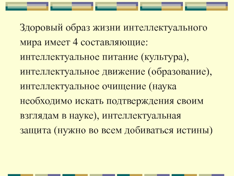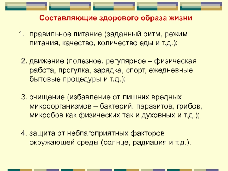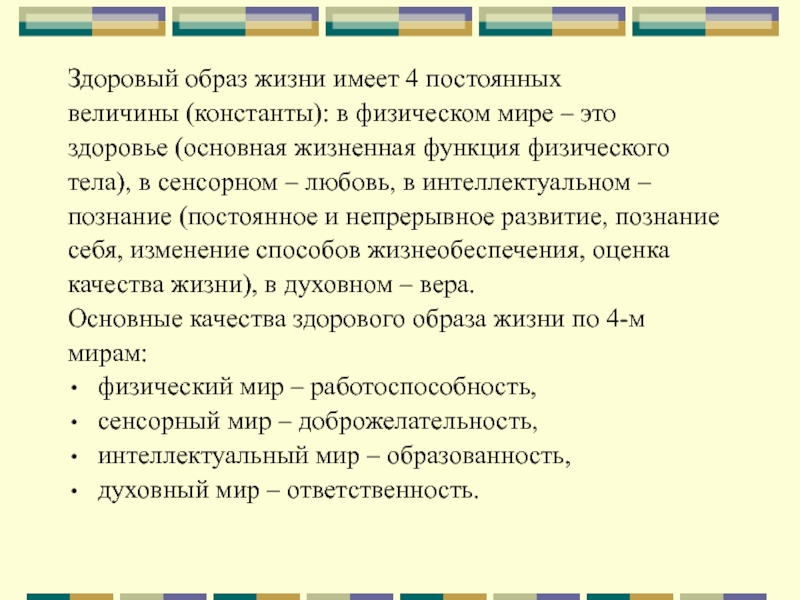 Слайд 14Здоровый образ жизни имеет 4 постоянных
