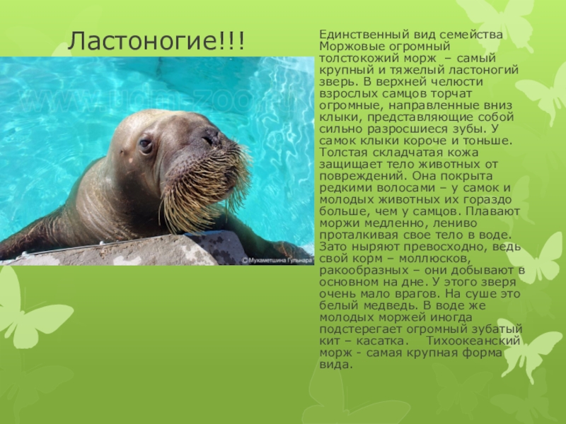 Единственный вид семейства Моржовые огромный толстокожий морж – самый крупный и