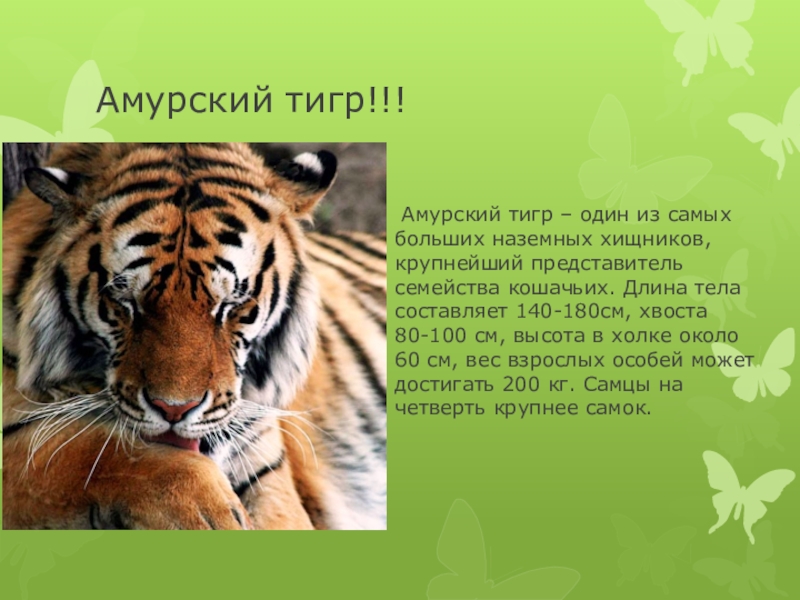 Это очень крупный, могучего телосложения зверь; самцы бывают длиной до