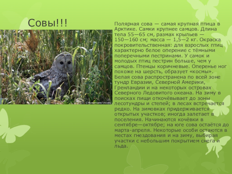 Полярная сова — самая крупная птица в Арктике. Самки крупнее самцов.