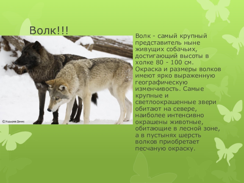 Волк - самый крупный представитель ныне живущих собачьих, достигающий высоты в