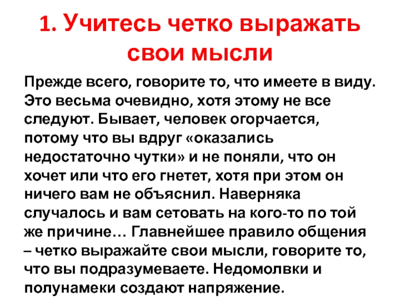 Слайд 211. Учитесь четко выражать свои мысли