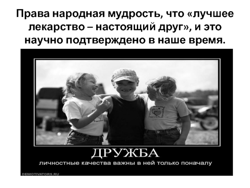Слайд 12Права народная мудрость, что «лучшее лекарство – настоящий друг», и это