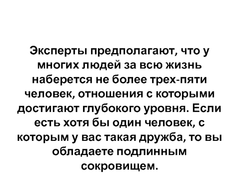 более трех-пяти человек, отношения с которыми достигают глубокого уровня. Если есть хотя бы один человек, с которым у вас такая дружба, то вы обладаете подлинным сокровищем.