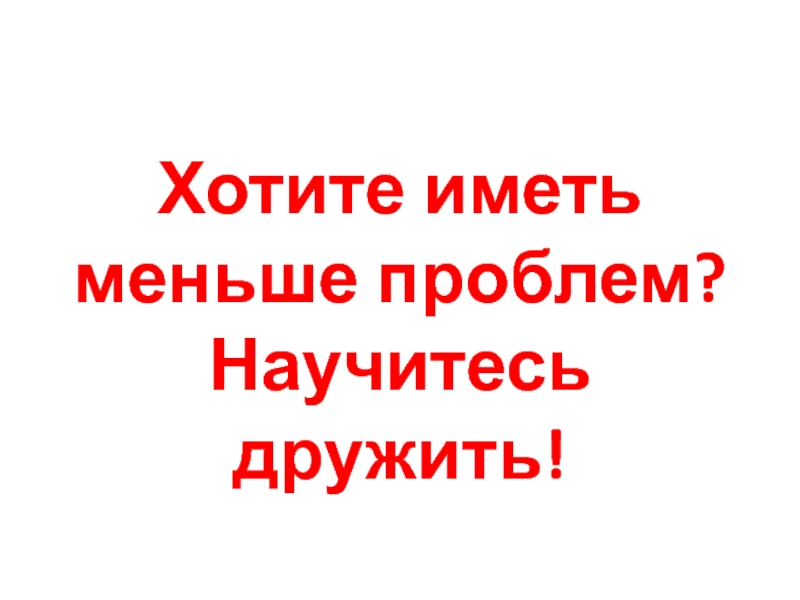 Слайд 3Хотите иметь меньше проблем? Научитесь дружить!