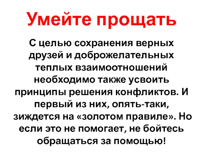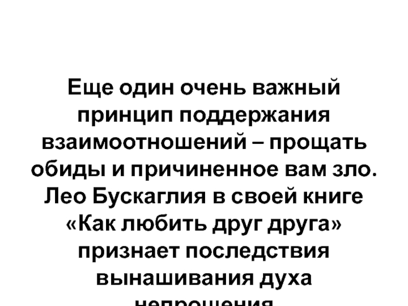 Слайд 36Еще один очень важный принцип поддержания взаимоотношений – прощать обиды и