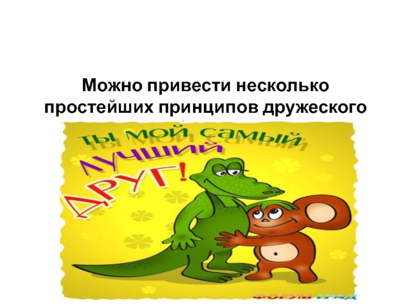 Слайд 20Можно привести несколько простейших принципов дружеского общения.
