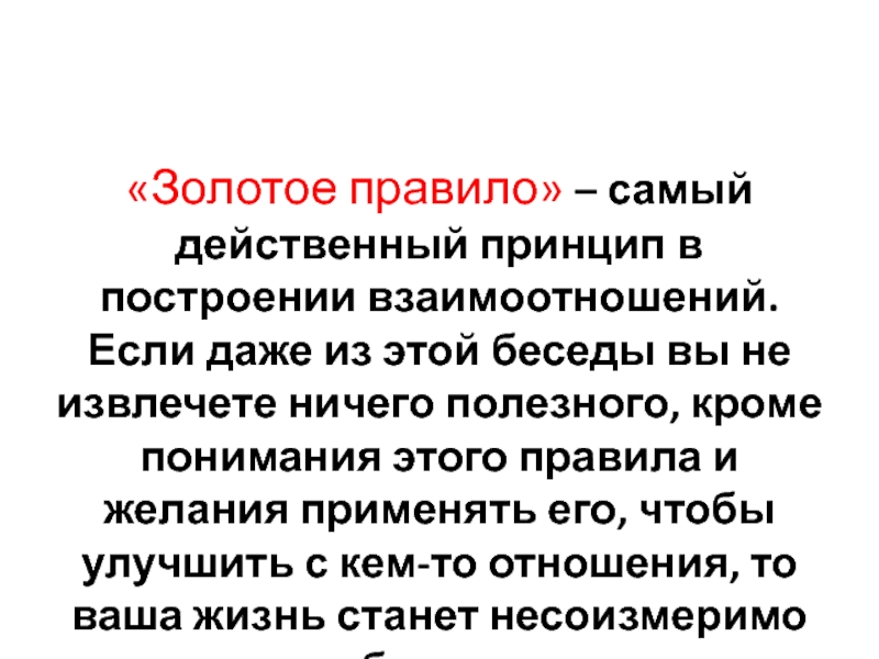 Слайд 33«Золотое правило» – самый действенный принцип в построении взаимоотношений. Если даже