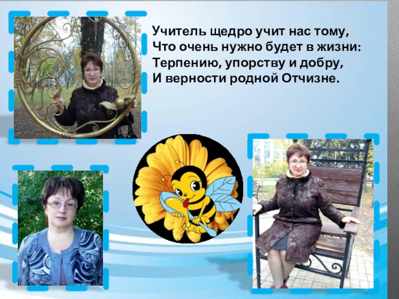 Слайд 22 Учитель щедро учит нас тому,