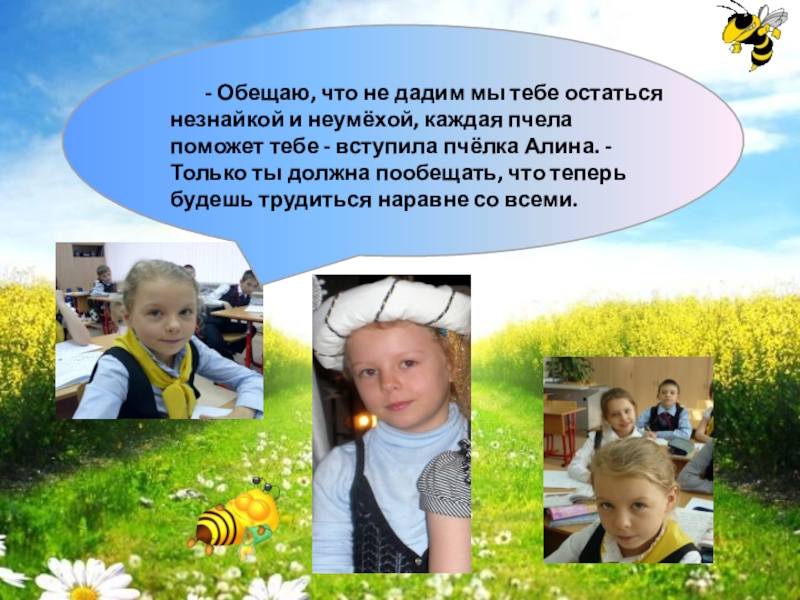 остаться незнайкой и неумёхой, каждая пчела поможет тебе - вступила пчёлка Алина. - Только ты должна пообещать, что теперь будешь трудиться наравне со всеми.