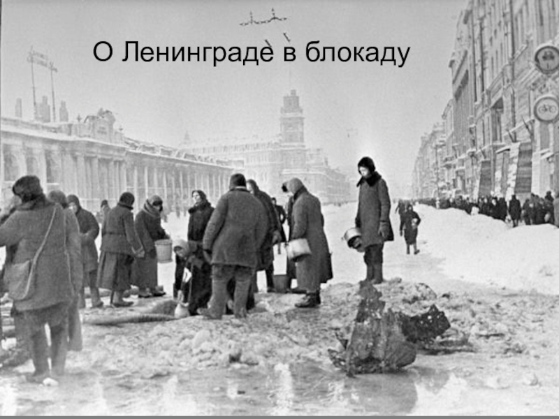 Слайд 19О Ленинграде в блокаду