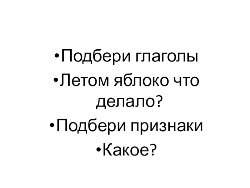Подбери глаголыЛетом яблоко что делало?Подбери признакиКакое?