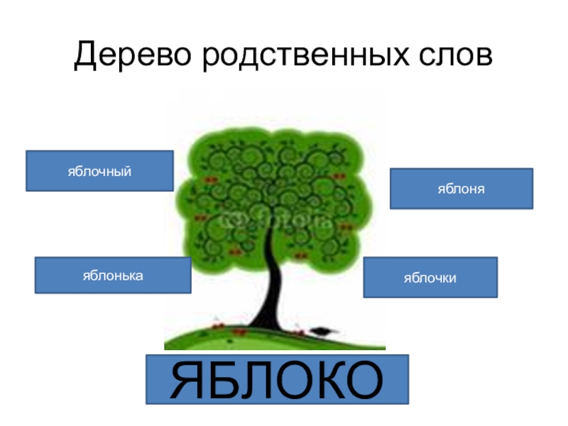 Дерево родственных словЯБЛОКОяблонькаяблочкияблоняяблочный