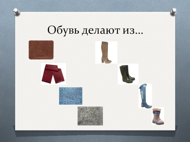 Слайд 9Обувь делают из…