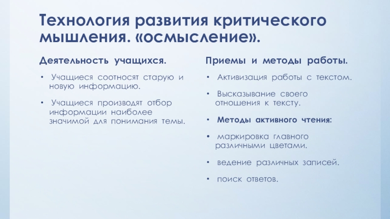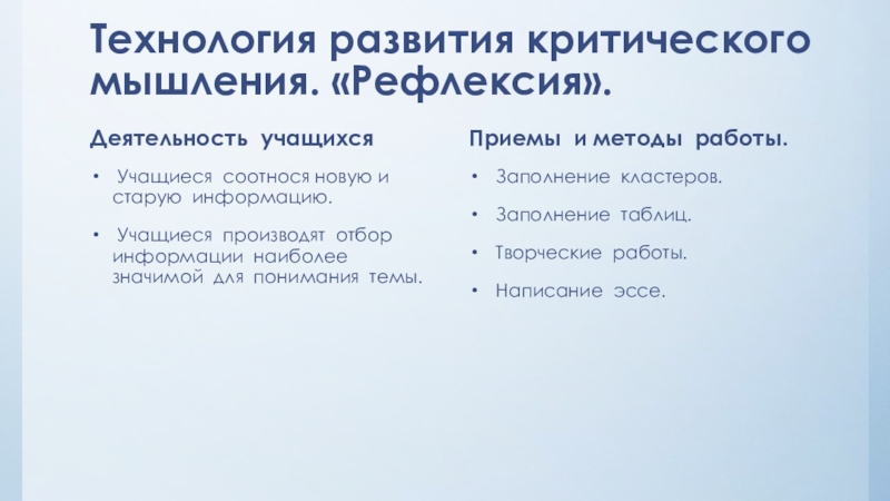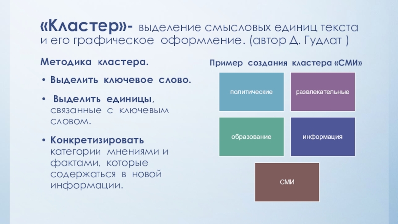 Конкретизировать категории мнениями и фактами, которые содержаться в новой информации.