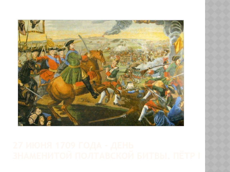 Слайд 927 июня 1709 года - день знаменитой Полтавской битвы. Пётр I