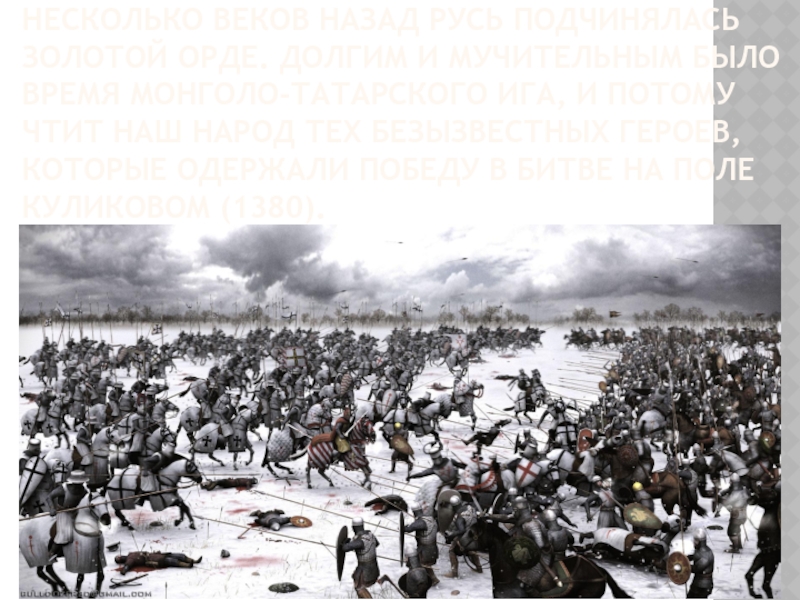 время монголо-татарского ига, и потому чтит наш народ тех безызвестных героев, которые одержали победу в битве на поле Куликовом (1380).