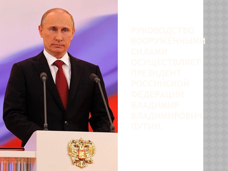 Слайд 15Руководство Вооруженными Силами осуществляет  Президент российской Федерации Владимир Владимирович Путин.