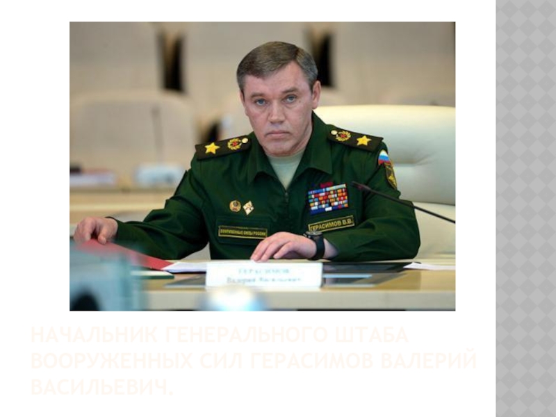 Слайд 17Начальник Генерального штаба Вооруженных Сил Герасимов Валерий Васильевич.