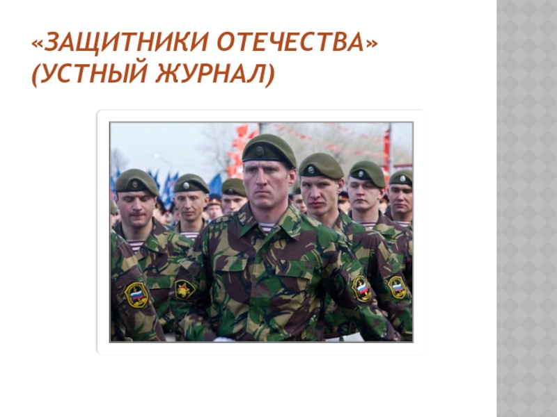 Слайд 1 «Защитники Отечества» (устный журнал)