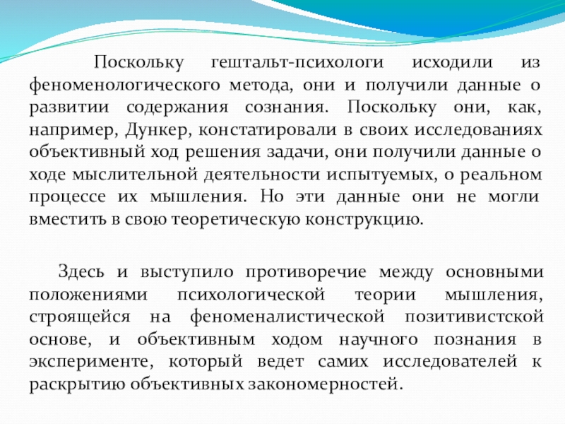 Слайд 6 Поскольку гештальт-психологи исходили из феноменологического метода, они и получили